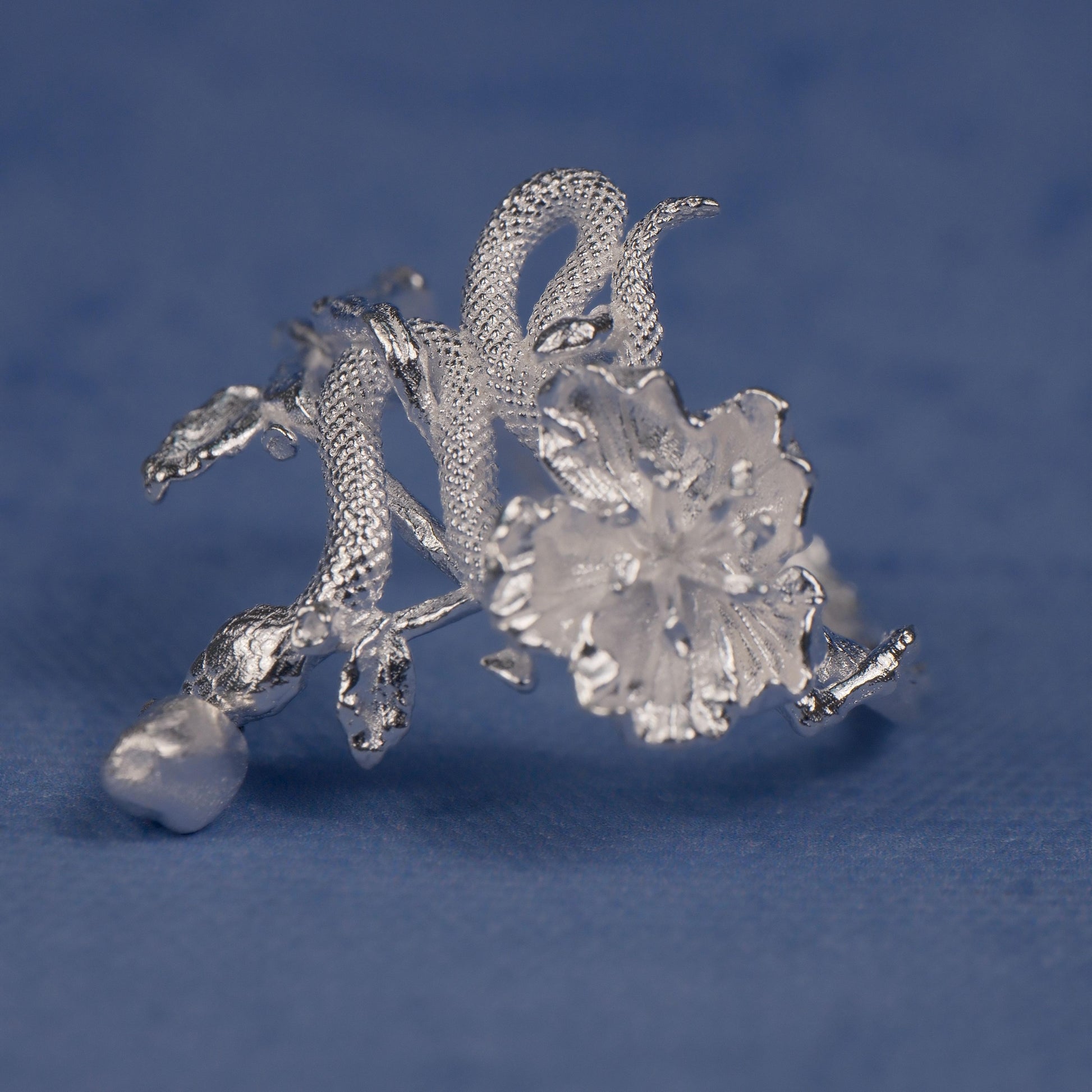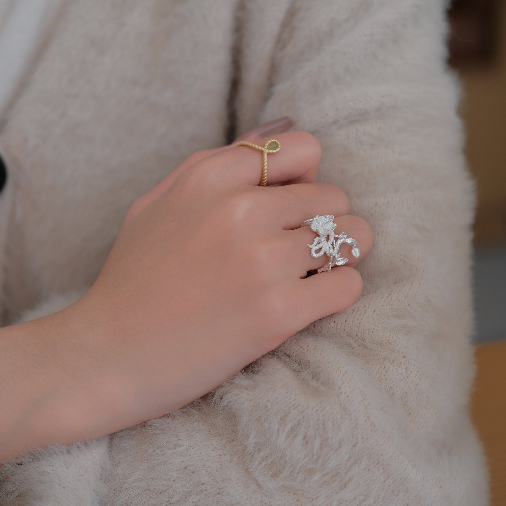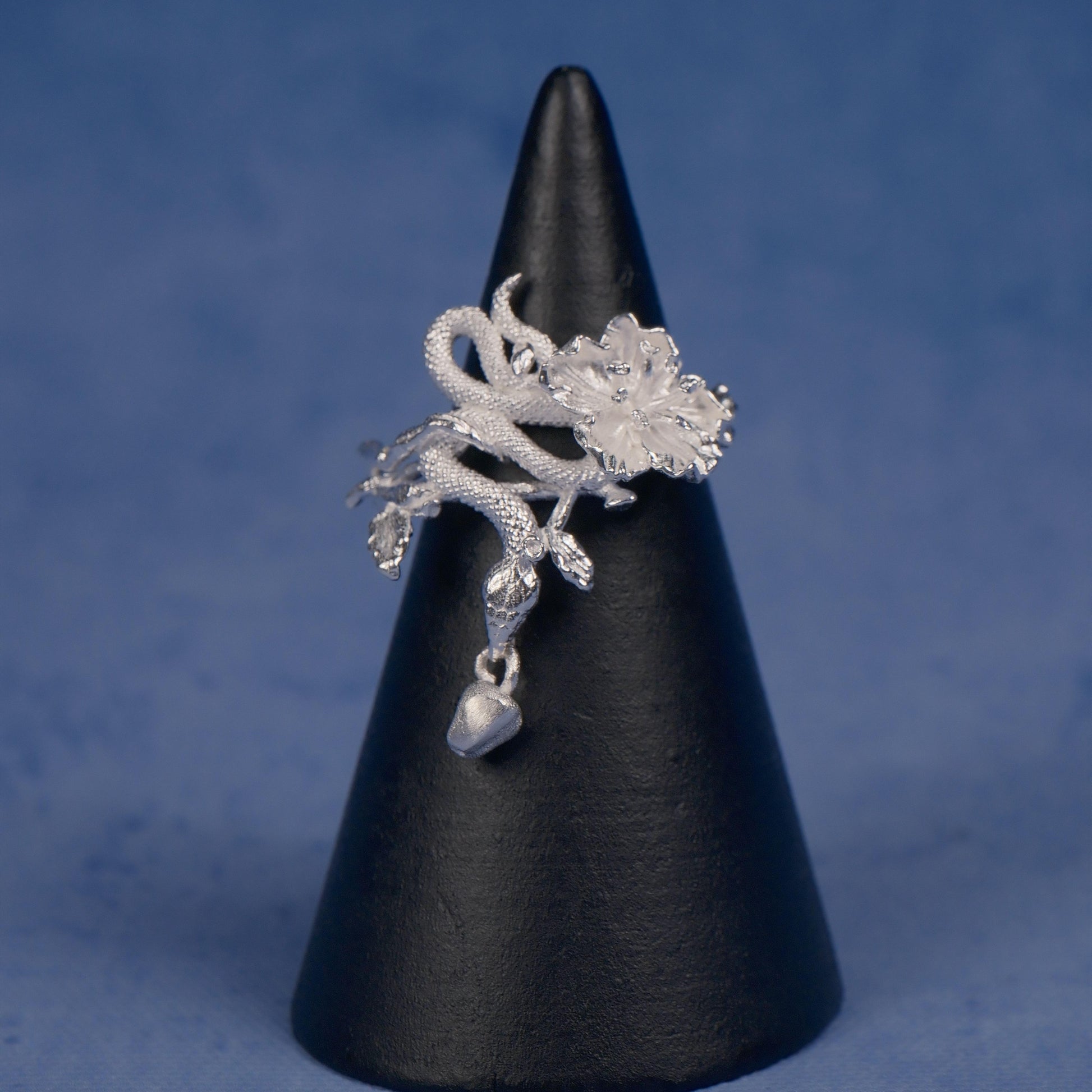 Snake and Apple Ring-Adjustable Sterling silver Botanical Jewelry
